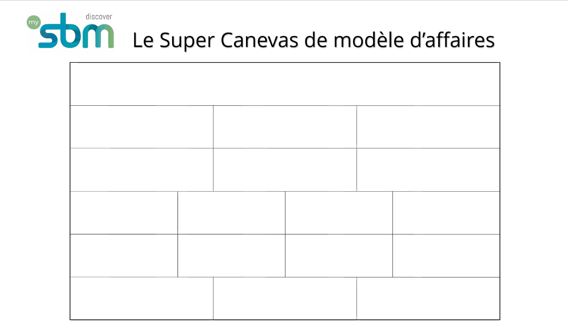 Le Super Canevas de modèle d’affaires est un outil simple, dont la mission est de t’aider à te poser les 18 bonnes questions lors de tes premières réflexions pour la création de ton entreprise. C’est l’outil idéal pour réfléchir à la logique de ta future entreprise et parfait pour être utilisé en petit groupe avec des affiches et des post-it, puis transcrit ici.